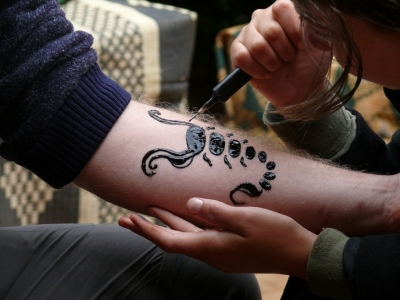Nach dem Frühstück geht es die 627 Stufen hoch zum Bus. Auf der Hälfte machen wir halt und Michael lässt sich ein Hennatatoo in Form eines Skorpions aufmalen. Wir holen Lektüre, warme Socken, ich wechsele die Hose. Auf dem Rückweg merke ich meine Muskeln, sie zittern beim Absteigen und mein Ischias meldet sich auch wieder – die Welt ist schlecht! Kurz vor dem Camp fängt es an zu schütten. Wir stellen uns bei einem Händler unter und ich erstehe zwei handgewebte Jäckchen für Lenja und Malte, meine süßen Enkelkinder. Sie sind bestimmt noch viel zu groß, aber sie gefallen mir einfach gut. (Nachtrag: Kommentar meiner Tochter: Die ziehen sie an, wenn ich sie im Waldorfkindergarten anmelde.) Der Händler lädt uns zum Tee ein und wir radebrechen ein bisschen, bis der Regen aufhört.